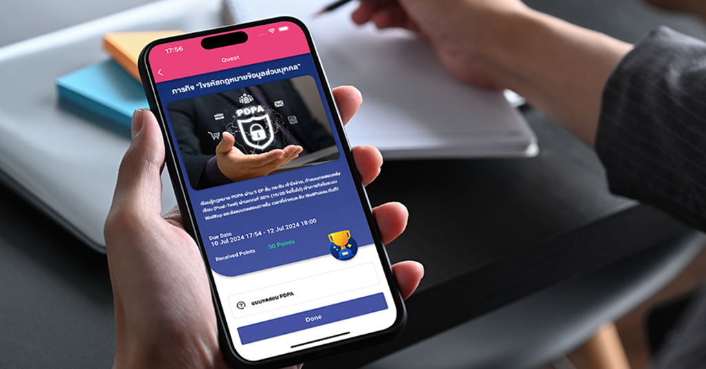 เรียนรู้กฎหมาย PDPA ผ่าน 5 EP สั้นกระชับ เข้าใจง่าย, ทำแบบทดสอบหลังเรียน (Post-Test) ผ่านเกณฑ์ 80% (16/20 ข้อขึ้นไป) เข้าภารกิจในระบบ WellExp และส่งแบบทดสอบภายในเวลาที่กำหนด รับ WellPoints ทันที!